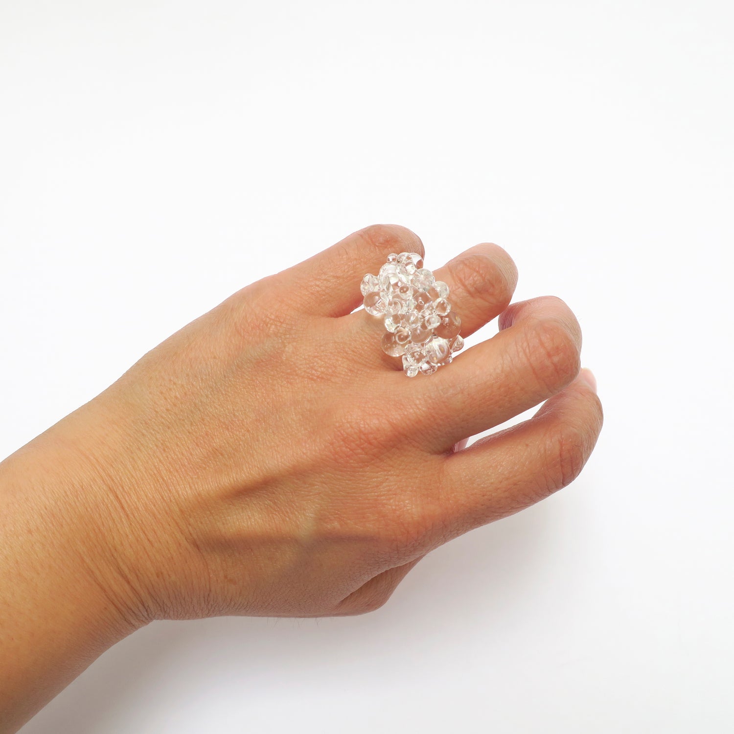 Presentamos nuestra exclusiva colección de anillos de cristal de Murano, donde el diseño excepcional se une a una artesanía precisa para crear piezas singulares y audaces. Cada anillo cuenta con una anilla transparente que dirige la atención al detalle superior, formado por esferas de Murano en variadas dimensiones, ensambladas a mano con gran delicadeza. Más que simples accesorios, estos anillos representan un impacto visual que realza cualquier estilo. A diferencia de la joyería metálica convencional, Ikura ofrece una perspectiva innovadora, destacando la belleza y adaptabilidad del vidrio para una expresión genuina. Para quien busca originalidad y una declaración de estilo única, estos anillos son la opción ideal.